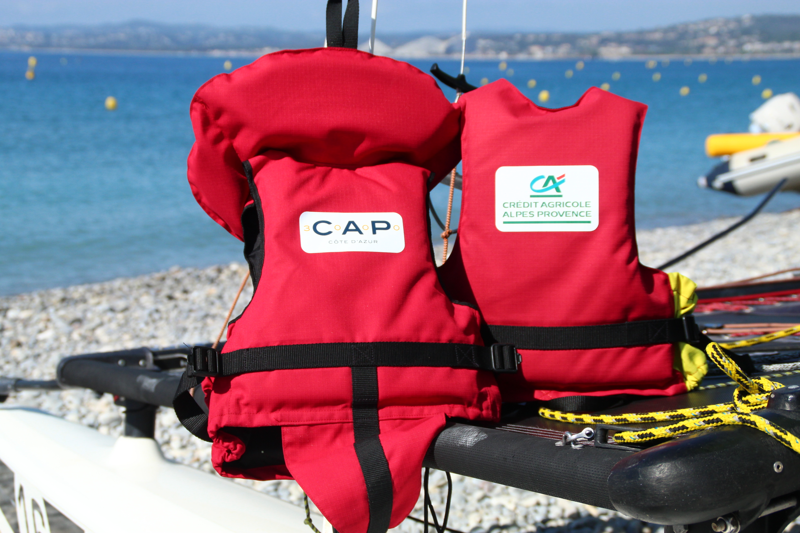 En effet, ce sont près d'une trentaine de vêtements de flottaison individuels* aux nomes qui furent financés par Cap 3000 et l'agence du Crédit Agricole de Saint Laurent du Var.