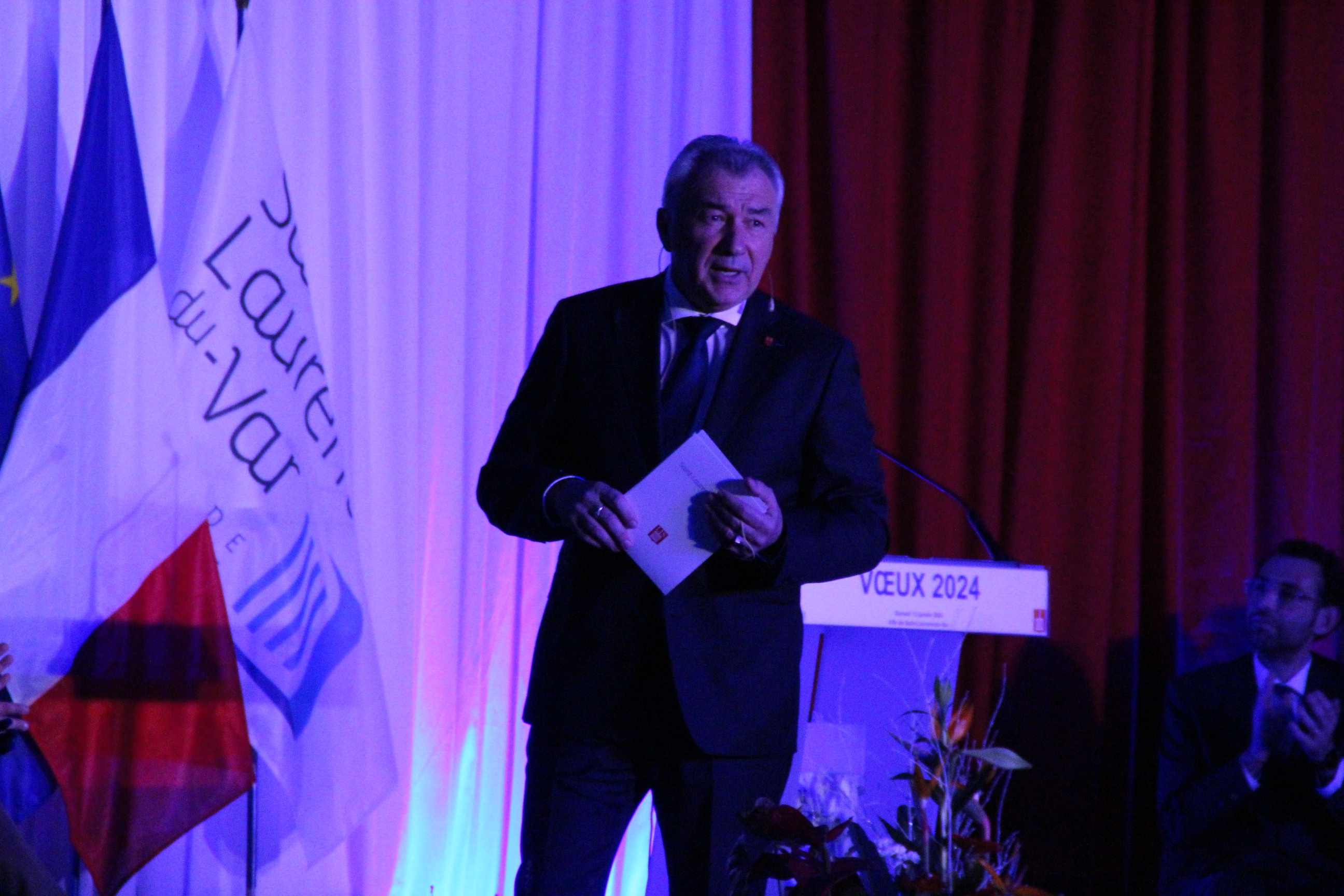 « Et nous avons la chance d'avoir un champion du monde à Saint-Laurent-du-Var aussi, on peut applaudir Romain Aufrère qui a été champion du monde junior dans l'épreuve du tir à la carabine et 50 mètres à 3 positions. Une magnifique médaille d'or qu'il a décrochée à l'occasion des championnats du monde junior en Corée du Sud. »