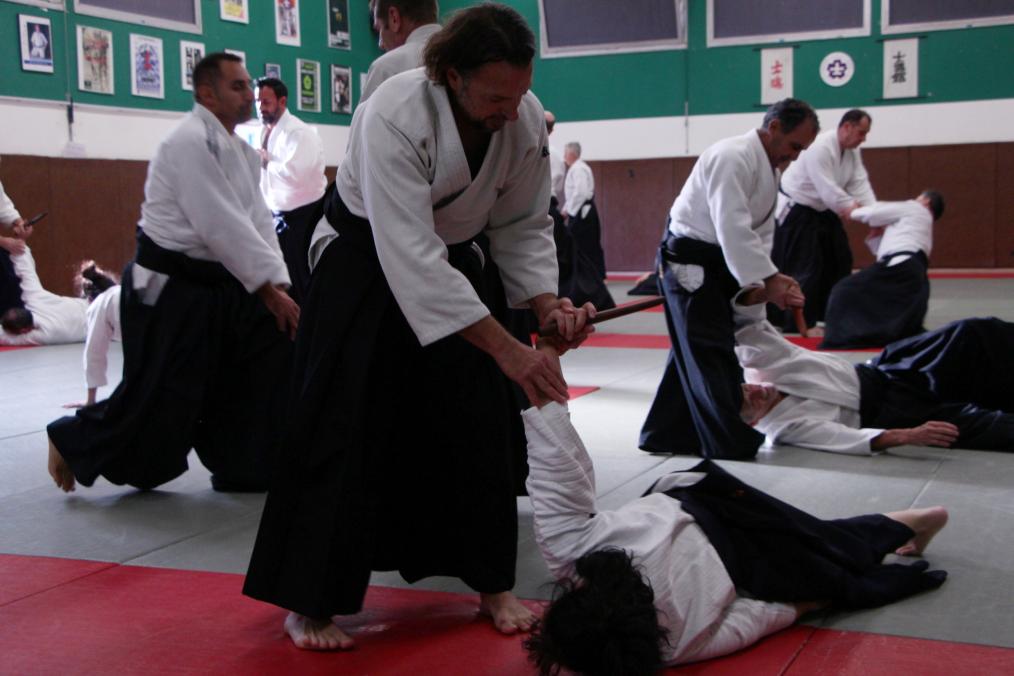 Durant l’après-midi, c’est un autre chapitre qui fut ouvert… celui des armes et des randori ! Après un rappel sur l’étiquette et les attentes des jurys, les aïkidoka ont travaillé autour du jo et du tantō (le couteau).