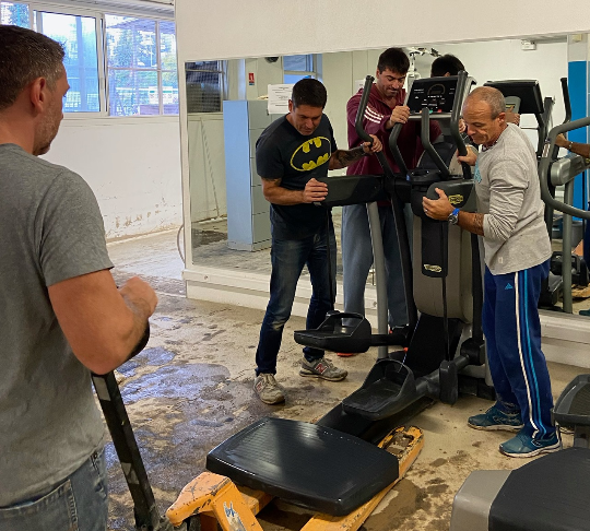 Il a fallu enlever la boue, déplacer les machines, effectuer un lavage qui a été pris en charge par le Service des sports de la Ville et surtout changer le dallage, principale victime de ces intempéries.