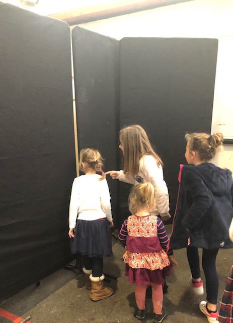 Mais, le clou de l'après-midi était bien évidemment le passage du Père Noël ! Certains n'en pouvait plus d'impatience alors que l'homme en rouge attendait son heure derrière les paravents installés là. Quelques petites filles curieuses ont glissé un oeil à travers les interstices du décor pour essayer d'enfin le voir. L'excitation monte d'un cran dans les travées de la salle. Il est annoncé, le voilà !