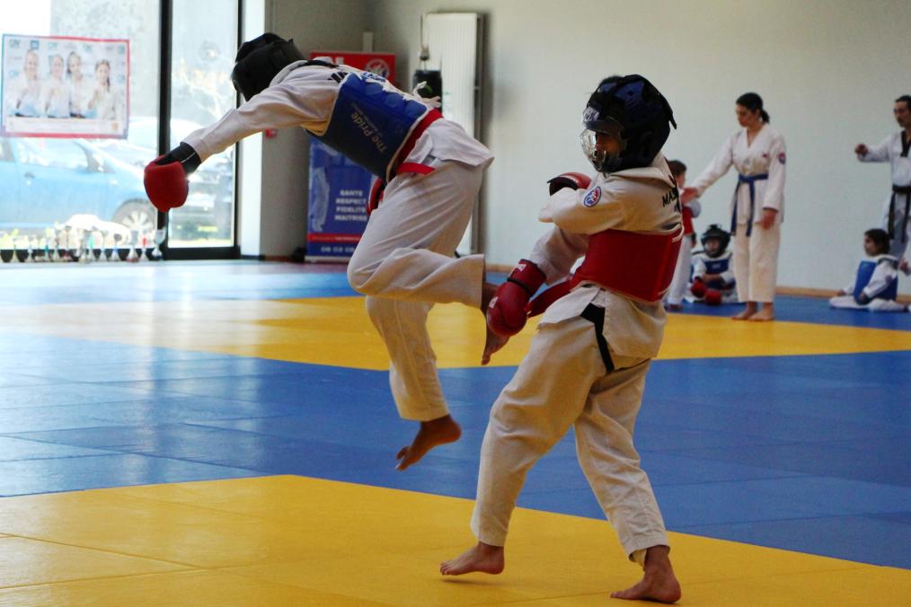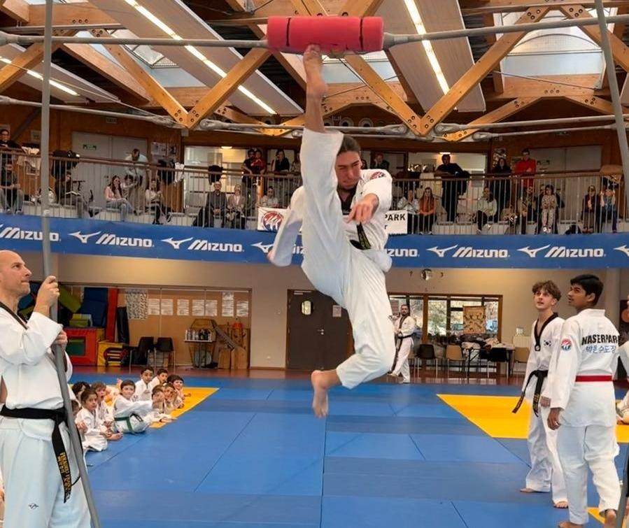 Au programme de la journée : combat à frappe réelle, Poomsae et l’épreuve que tout le monde attend, celle qui fait lever la salle à chaque passage : le coup de pied sauté. Cette année, le public a eu droit à un moment fort. Le record a été battu, et pas qu’un peu : 2,65 m, signés par un Laurentin, Hayden Marlière, sous les applaudissements nourris de tous les clubs.