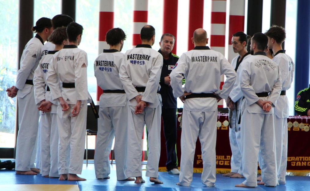 Tout au long de la journée, les regards affûtés mais profondément bienveillants du maître Aziz El Khelali et du maître Park Soon ont accompagné les participants. Ce dernier, véritable figure tutélaire du Master Park 06, fête cette année ses 40 ans de présence en France. Un symbole fort, presque un fil rouge : celui d’un enseignement transmis avec constance, exigence et humanité.