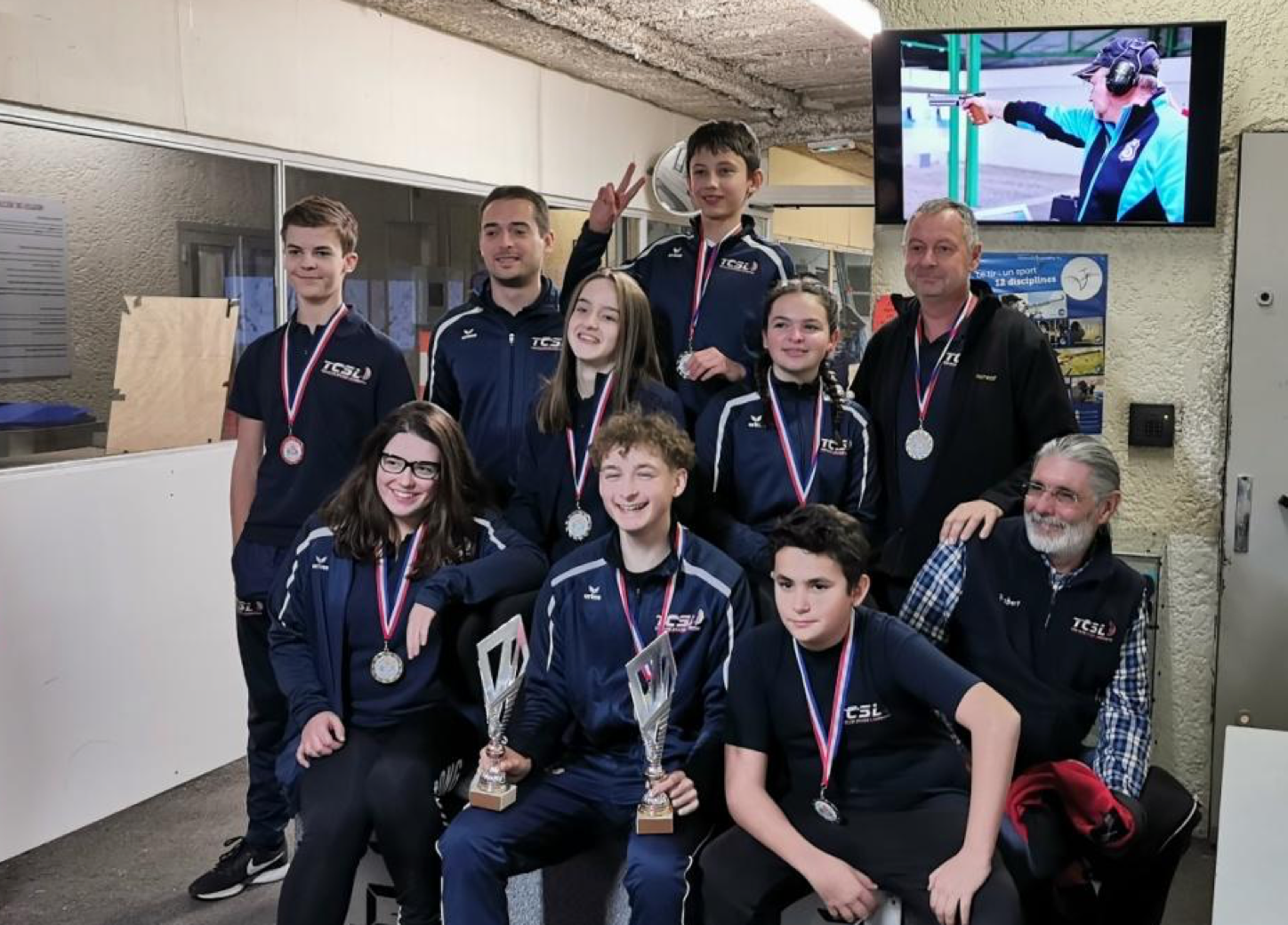 Le 19 février, les quatre équipes aux couleurs du TCSL se préparent avant d’aller sur le pas de tir. Les deux équipes adultes sont composées de cinq tireurs, dont une femme et un jeune. L’une représente les carabiners adulte, l’autre les tireurs au pistolet. Bandeau pour certains, casquettes pour d’autres, rien ne doit altérer leur concentration. Le tir est une mécanique de précision et s'avère intransigeante. Les deux autres groupes du TCSL sont constitués de trois d’élève de l’école de tir. La jeune génération tend le bras pour trouver une stabilité, la victoire leur tend la main.