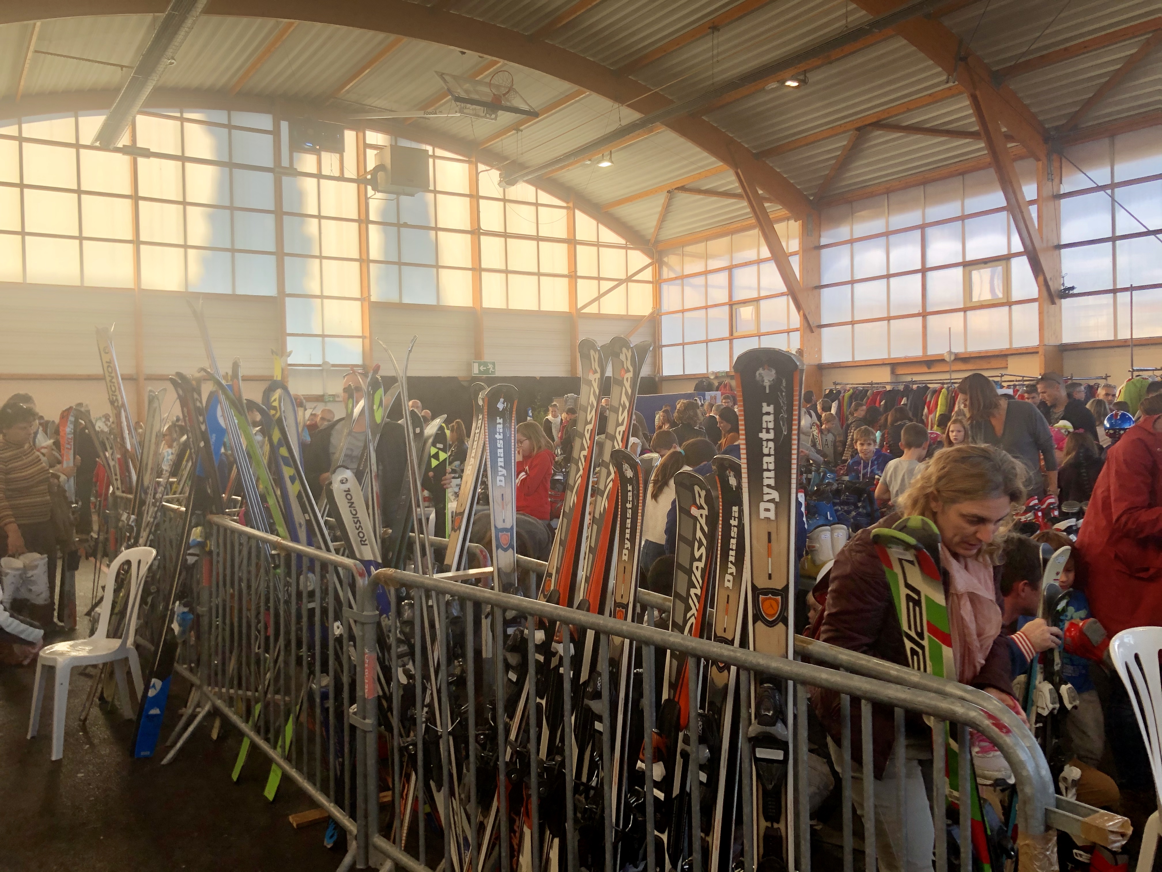 Les flocons se transforment en premières étoiles. Sur les sommets, la neige commence à déposer son manteau blanc pendant que les skieurs sont à la recherche de vêtements chauds : « Il y a une bonne sous-couche, on commence à skier vers le 15 décembre. On a hâte ». Les couloirs sont beaucoup empruntés, les acheteurs slalomment et sont à l’affût de la bonne affaire. En sillonnant les sentiers de la braderie, les skis se dessinent les uns après les autres. Les équipements sont d’occasion, les prix sont fixés à l’aide des membres du Ski Club : « On se met d’accord sur un tarif, l’objectif c’est que les propriétaires ne reviennent pas récupérer leur équipement en fin de journée s’il est invendu ». L’effet boule de neige est enclenché, le bouche à oreille a ramené tous les amateurs de glisse.